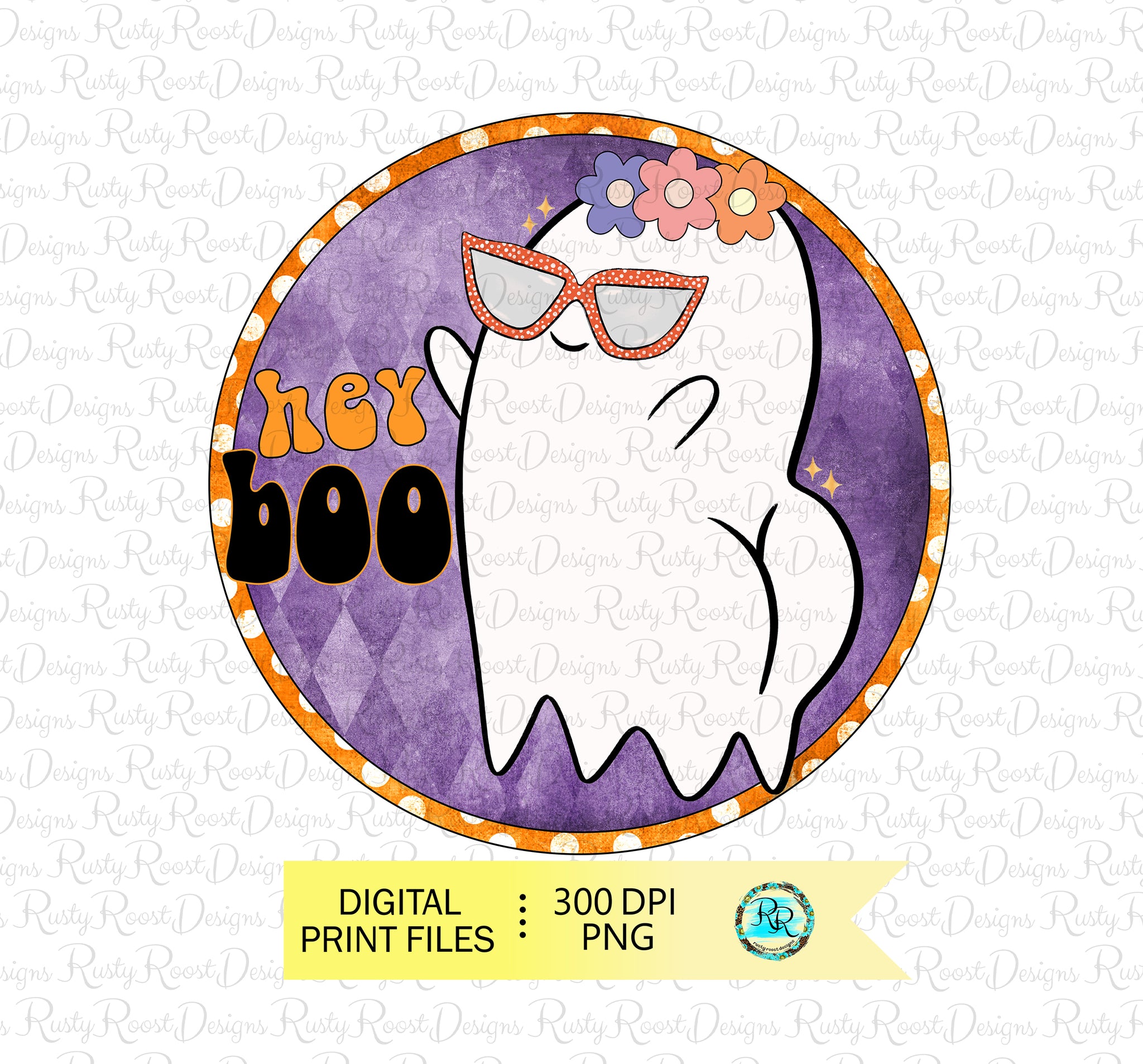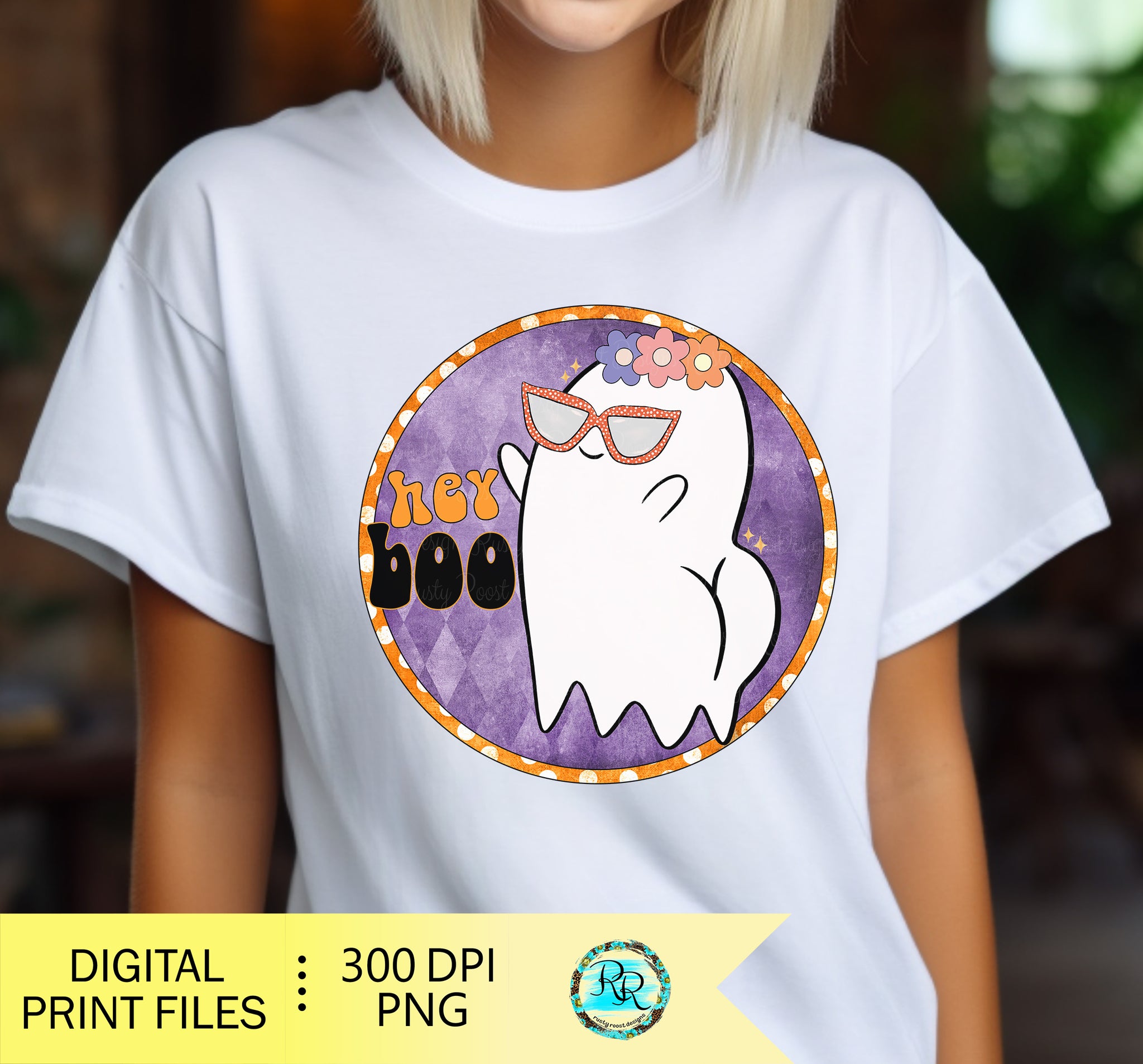 Hey Boo Png, Ghost Booty Png, Retro Halloween sublimation downloads, hand drawn, Cute ghost sublimation PNG, Printable design